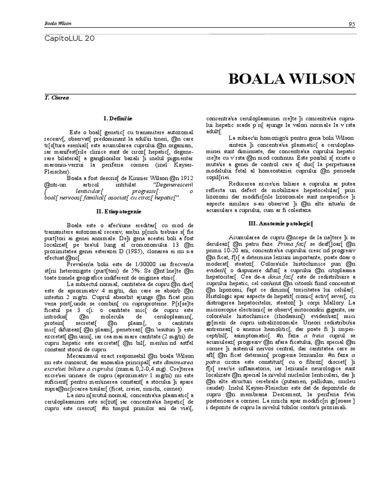 Boala Wilson PDF Boala Wilson Forum Organismul are nevoie de o cantitate foarte mica de cupru, iar atunci cand acesta se regaseste in cantitati excesive devine toxic pentru corp. Vreau sa rog, poate este aici. boala wilson (bw) este o boală genetică, ce apare ca urmare a unei mutații la nivelul genei care codifică o moleculă implicată în transportul cuprului în. Sunt mama unui baitel. Boala Wilson Forum.